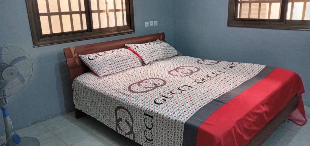 À louer, un appartement meublé situé à Avepozo, côté plage. Ce bien se compose de deux chambres, d'un salon au rez-de-chaussée, de sanitaires et d'une cuisine moderne bien équipée. Il dispose également d'une connexion Wi-Fi et d'un garage. Le loyer est fixé à 350 mille FCFA, avec une caution de 100 mille FCFA. La commission est de 25% pour un court séjour et d'un mois pour un long séjour. Les visites sont facturées 5000 FCFA.