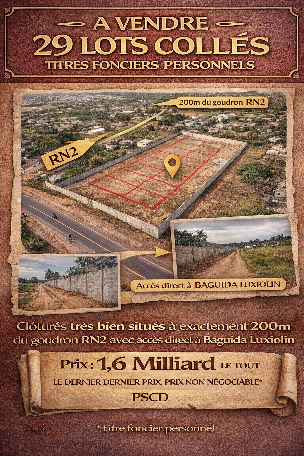 Prix : 1,6 milliard FCFA le lot, dernier prix, non négociable.