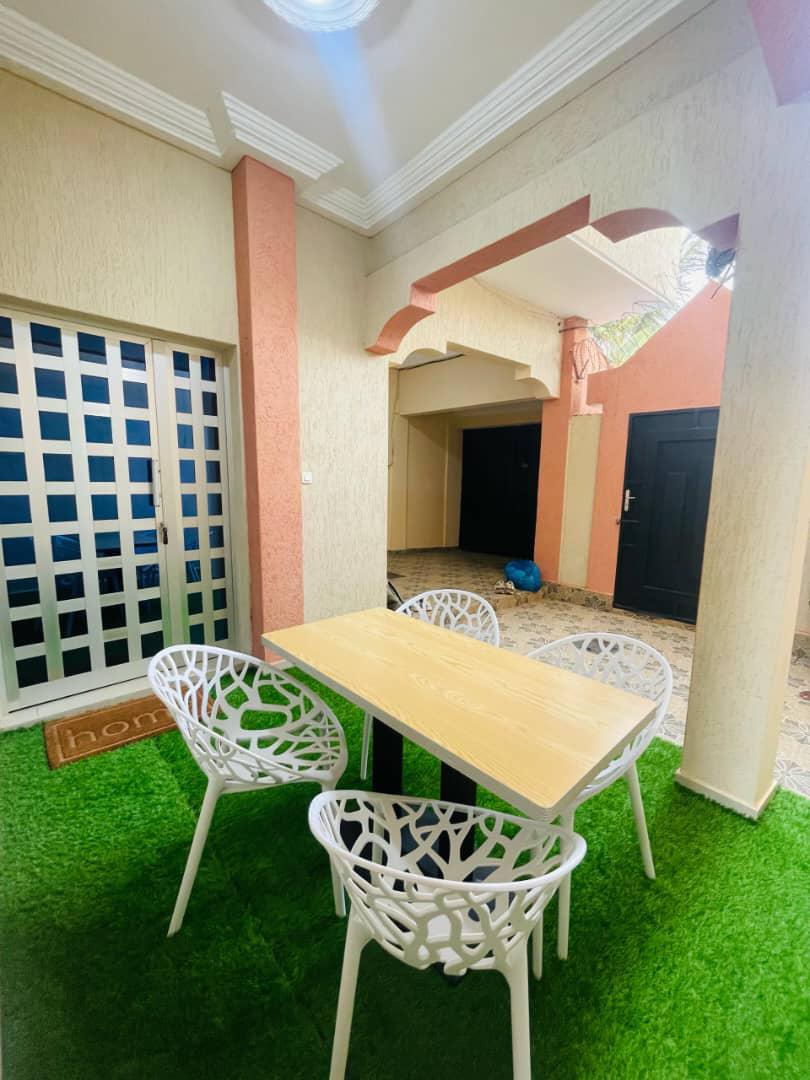 Cet appartement meublé, scindé en cour unique, est situé à Hédzranawoé, non loin de la station d'essence Yatt & Co et à seulement 100 mètres du goudron. Il se compose, au rez-de-chaussée, de deux chambres, d'un salon, d'une cuisine interne, d'une salle d'eau (WC douche) et d'un garage. Les tarifs de location sont les suivants : 45 000 FCFA par jour, 220 000 FCFA pour une semaine et 320 000 FCFA pour deux semaines. Une caution remboursable de 50 000 FCFA est requise. Les frais d'agence s'élèvent à 25% du loyer. Une visite est possible moyennant 5 000 FCFA.