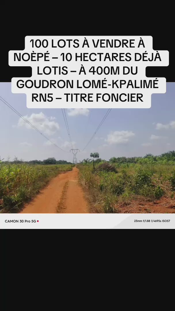 100 LOTS À VENDRE À NOÈPÉ – 10 HECTARES DÉJÀ LOTIS – À 400M DU GOUDRON LOMÉ-KPALIMÉ RN5 – TITRE FONCIER