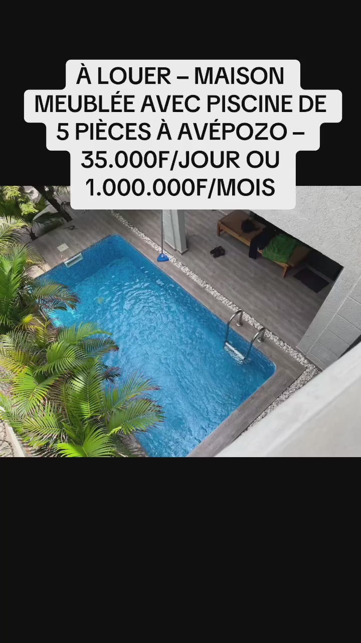 À LOUER – MAISON MEUBLÉE AVEC PISCINE DE 5 PIÈCES À AVÉPOZO – 35.000F/JOUR OU 1.000.000F/MOIS