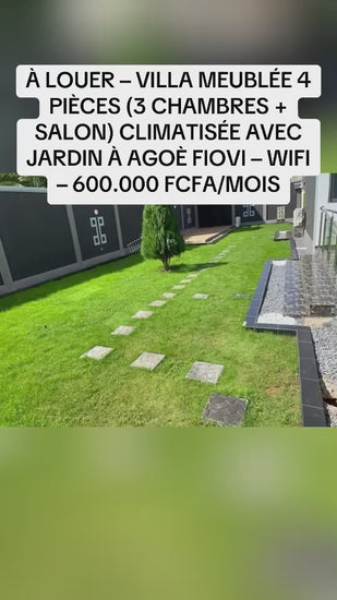À LOUER – VILLA MEUBLÉE 4 PIÈCES (3 CHAMBRES + SALON) CLIMATISÉE AVEC JARDIN À AGOÈ FIOVI – WIFI – 600.000 FCFA/MOIS