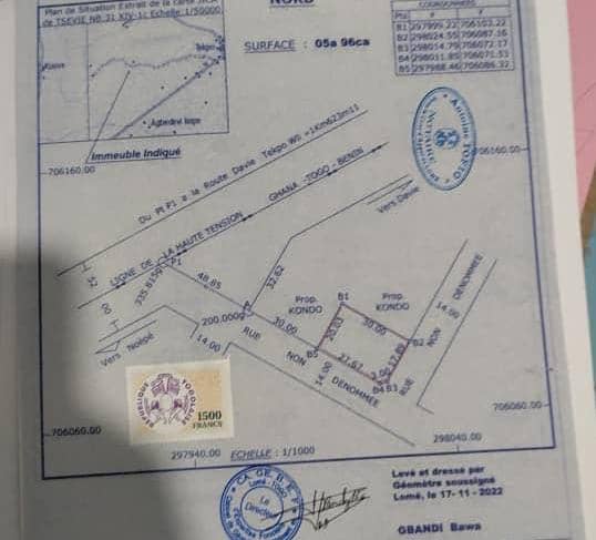 À vendre, un terrain d'un lot (20/30) en angle de rue, situé à Davié au niveau de la haute tension. La parcelle se trouve à 1,5 km du goudron et à 3,5 km de la Nationale N°1, dans une zone déjà habitée. Le dossier est accompagné d'un titre foncier personnel en cours et le bornage contradictoire a déjà été effectué. Visite facturée.