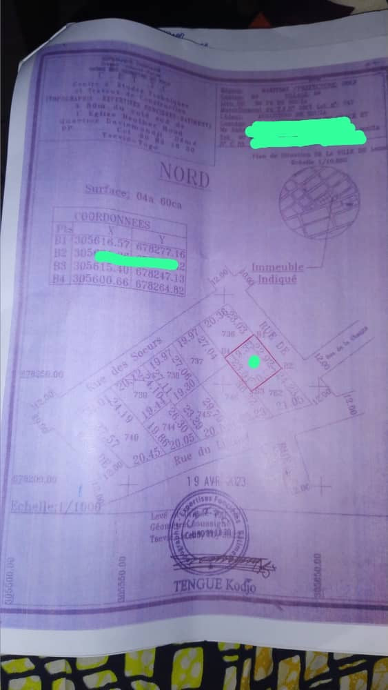 - Emplacement : Bè, rue de l’OCAM, derrière la station Total