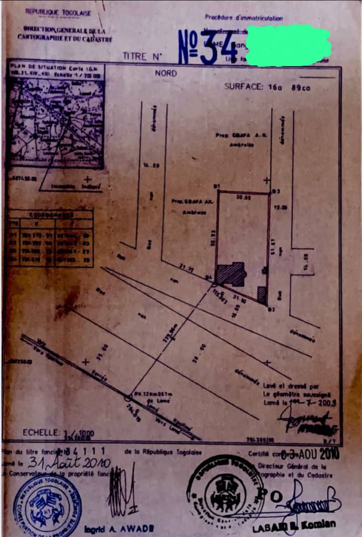 Terrain à vendre à Adidogomé – 70 Millions FCFA