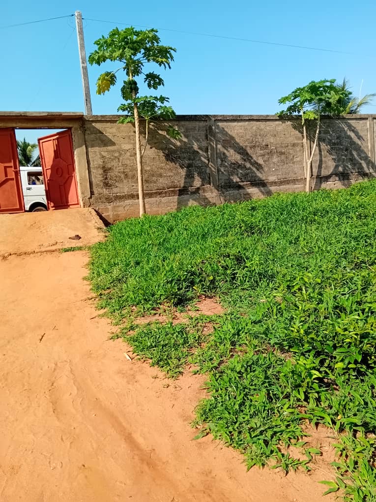 *08 lots collés* à djagblé *non loin de la réserve de l'ancienne société de Seiko* devenue aujourd'hui garage des voitures des ciments Dangoté à côté du garage à *200m du goudron*. Terrain avec 06 chambres dessus.