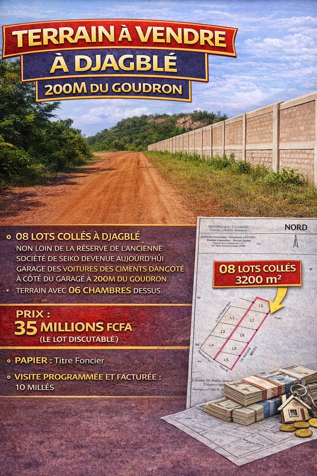 *PRIX*: 35 millions FCFA le lot discutable
