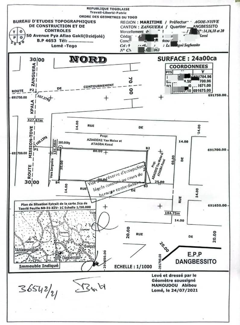 Ce terrain à vendre est situé à Zanguera Dangbessito (Kpalamonou), une localité bien desservie. Il est composé de 04 lots collés et déjà clôturés, offrant une surface totale intéressante pour votre projet. L'emplacement est stratégique, à seulement 300 mètres du contournement, au carrefour Kpala Station La Paix, assurant un excellent accès. Les documents sont en règle avec un bornage contradictoire et un titre foncier personnel, garantissant une transaction sécurisée. Le prix est fixé à 22 millions FCFA par lot et reste discutable.