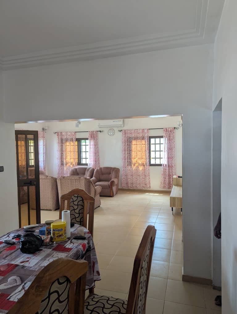 Villa à vendre située à Agoè Adougba, à proximité de la maison du ministre BAWARA. Cette propriété est bâtie sur un demi-lot. Elle se compose de deux chambres avec salon, wc et douche ainsi qu'une cuisine interne, d'une chambre supplémentaire avec salon, wc et douche interne, d'un garage et d'un petit espace. Les documents comprennent trois tampons. Le prix est de 55 millions FCFA et est négociable.
